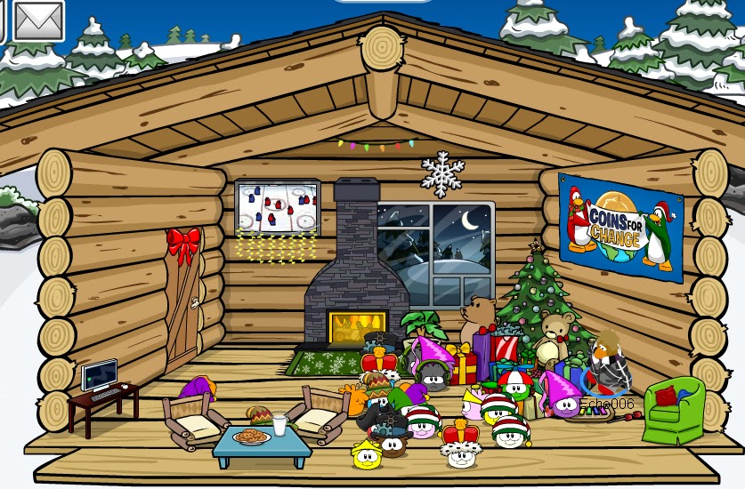 Echo006 In Club Penguin Cozy Log Cabin Igloo